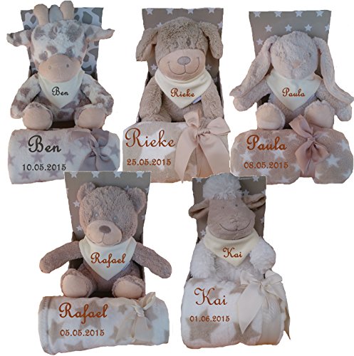 Baby Kinder Set 3 teilig Babydecke mit Namen bestickt Teddy Halstuch Taufe Geburt