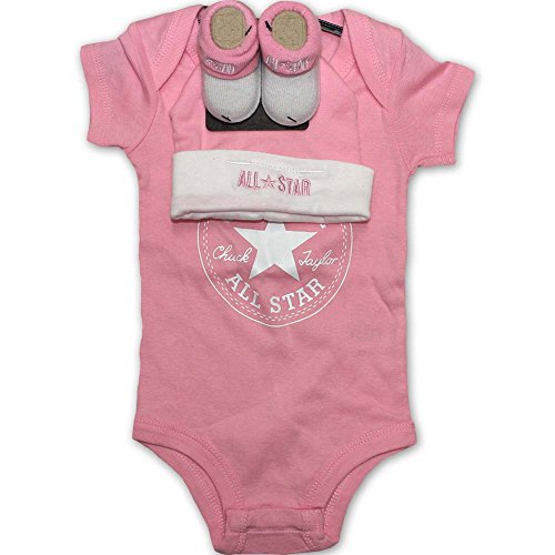 Converse Babykleidung Set Erstausstattung Baby Geschenkset Body Strampler Mütze Socken 3er Gift Set Pink Gr. 0-6 Monate