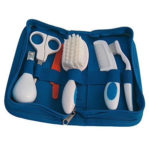 bestehend aus: - 1 x Nagelschere mit abgerundeten Spitzen - 1 x Nagelknipser - 4 x Einweg- Nagelfeile - 1 x Kinderbürste - 1 x Kamm - 1 x Zahnbürste - 1 x Reiseetui