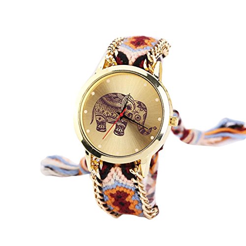 Sunnywill Frauen Elefant Muster eingewoben Seil Band Armband Quarz Zifferblatt Armbanduhr Orange